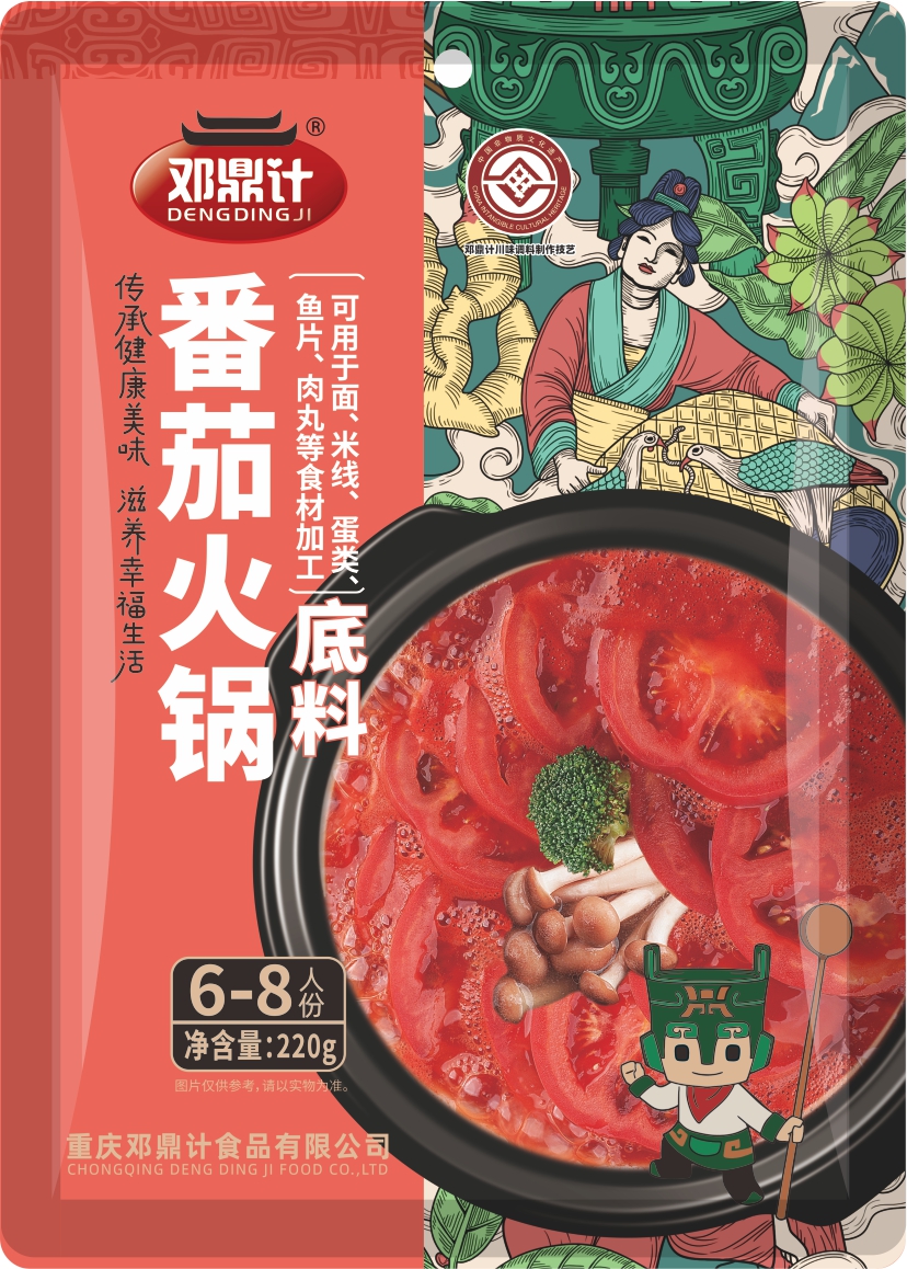重庆邓鼎计食品有限公司位于世界火锅之都——重庆,是一家专业从事火锅底料、复合调味料等系列产品研发、生产和销售的现代化民营企业,致力于为社会提供“美味、健康”的高品质产品为己任;同时也为餐饮、食品经营企业提供标准化、多样化的产品定制和非定制服务。